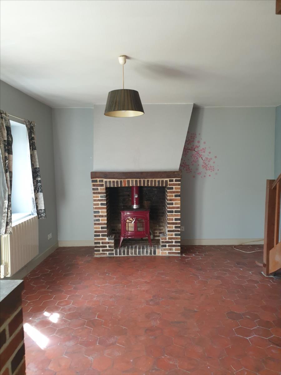 - au RDC :  séjour avec poêle à bois, cuisine aménagée-équipée, salle d'eau avec WC.