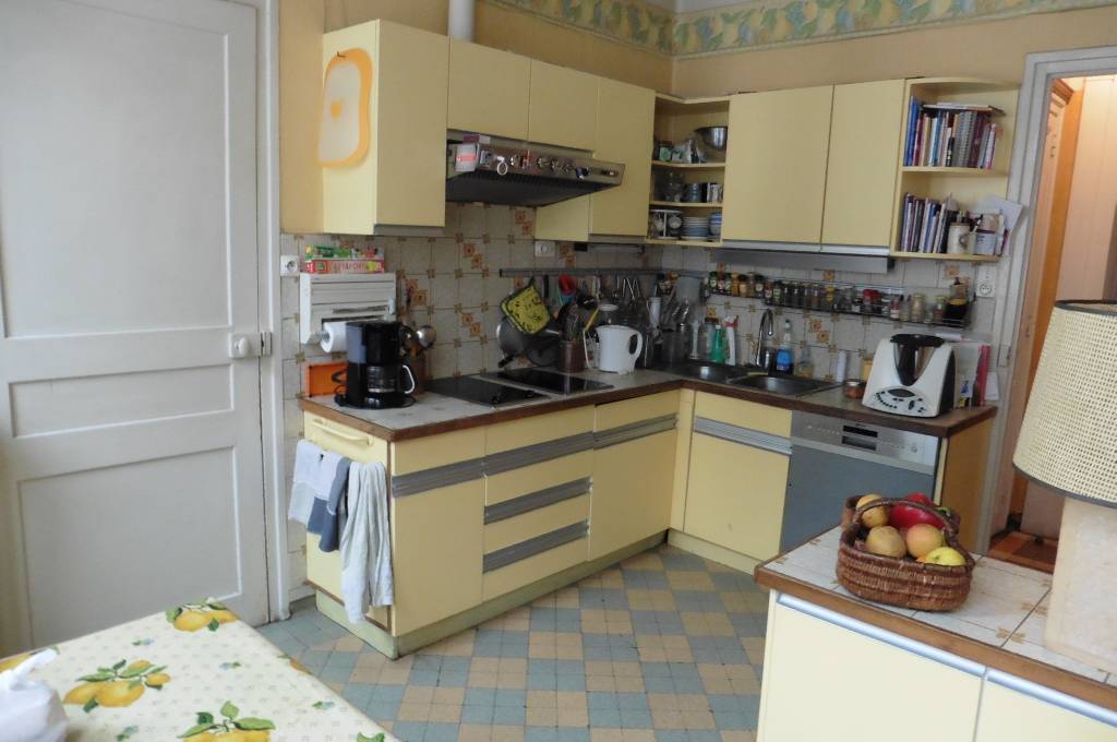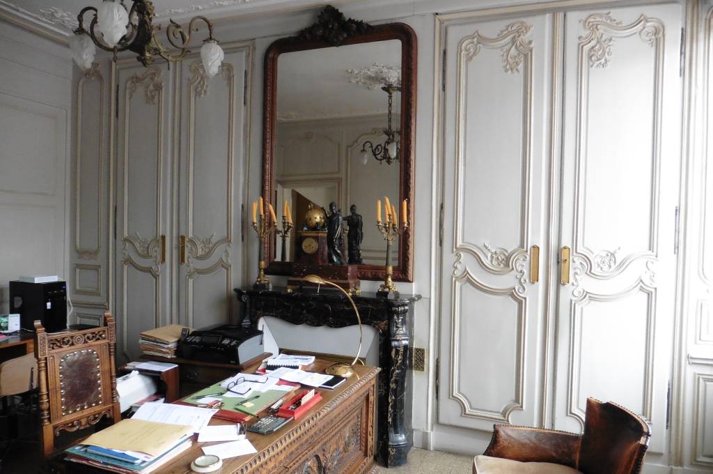 - au RDC : entrée, bureau (18m²), salon (24m²), salle à manger ( 20m²), cuisine (13m²), arrière-cuisine (6m²), WC, entrée sur cour;