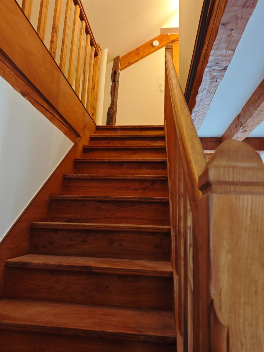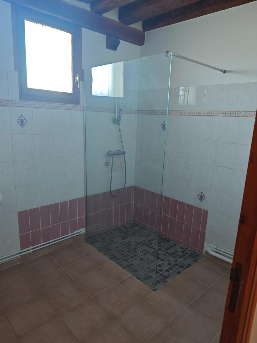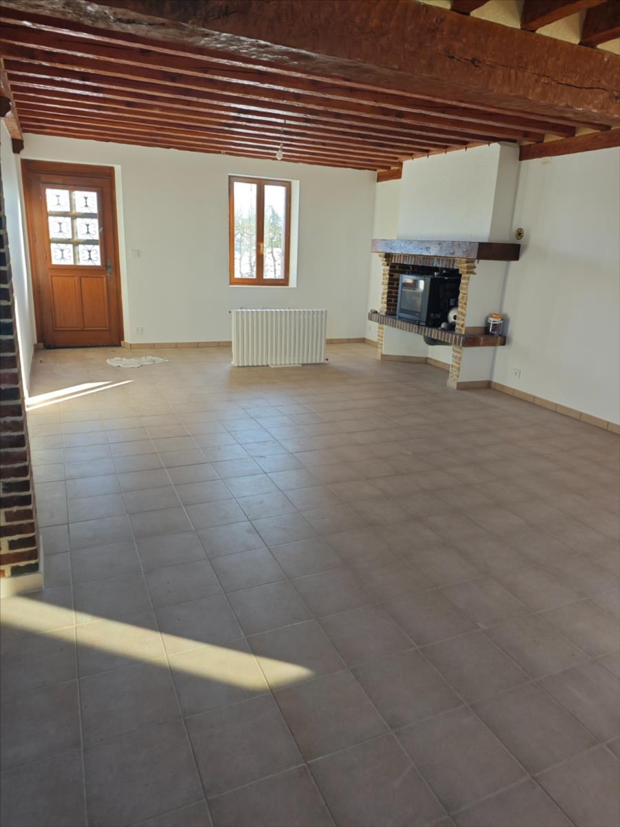 Belle salle de séjour avec cheminée ouverte sur la cuisine, couloir desservant trois belles chambres, une salle de bains, wc.