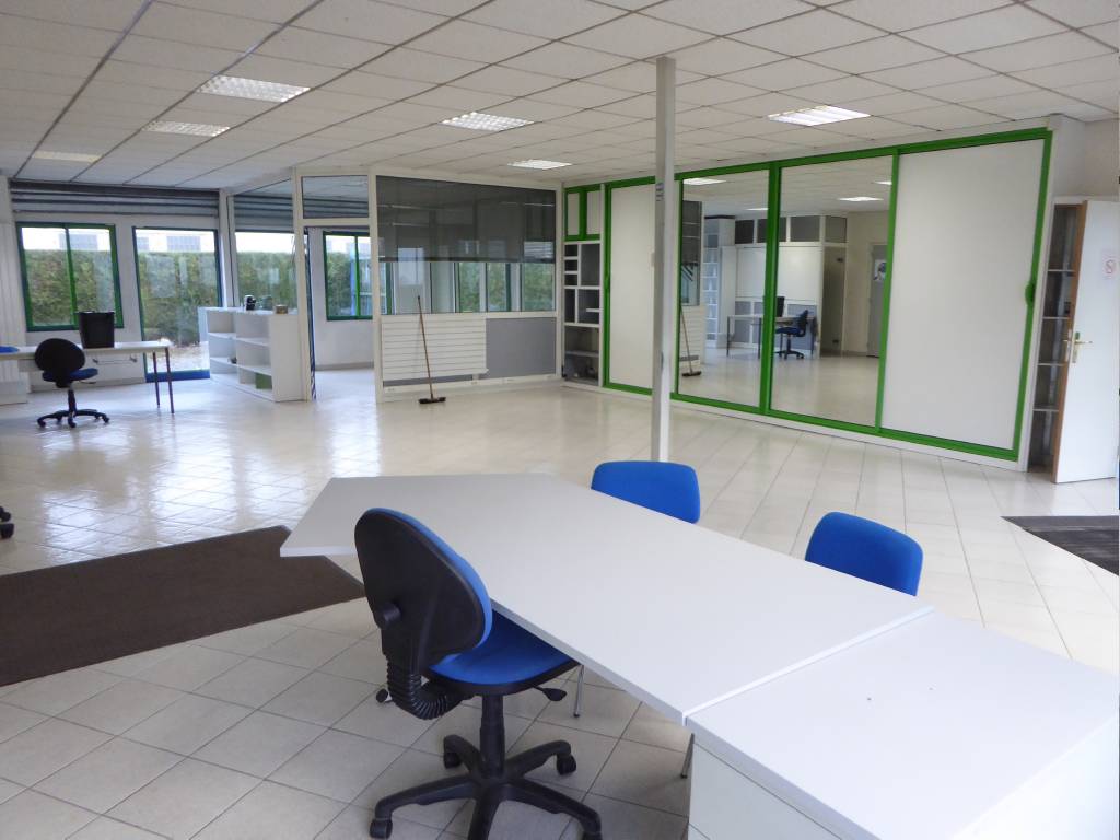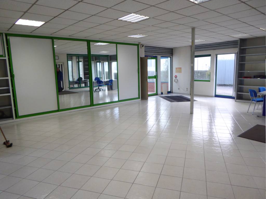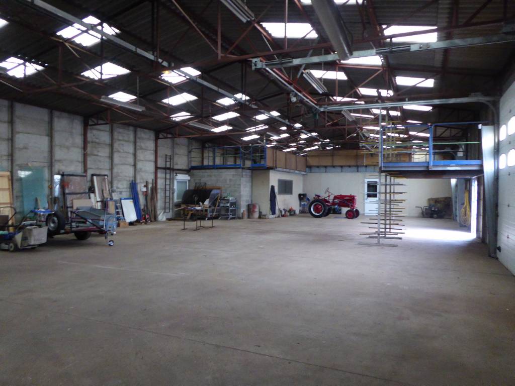 construction 1991, agrandie en 2000: - Atelier - 752m² - possibilité agrandissement - sol chape béton - 4 portes sectionnelles (hauteur:3,5mx4) automatiques - 1 porte sectionnelle (4,3mx4) automatique - WC, vestiaire, cuisine, local technique - Bureaux - 93m² - nombreux placards - lavabo et WC - chauff. électrique. Fermé par rideaux métalliques et alarmes Parking pour semi-remorque. impôt foncier 2018: 3 418 €