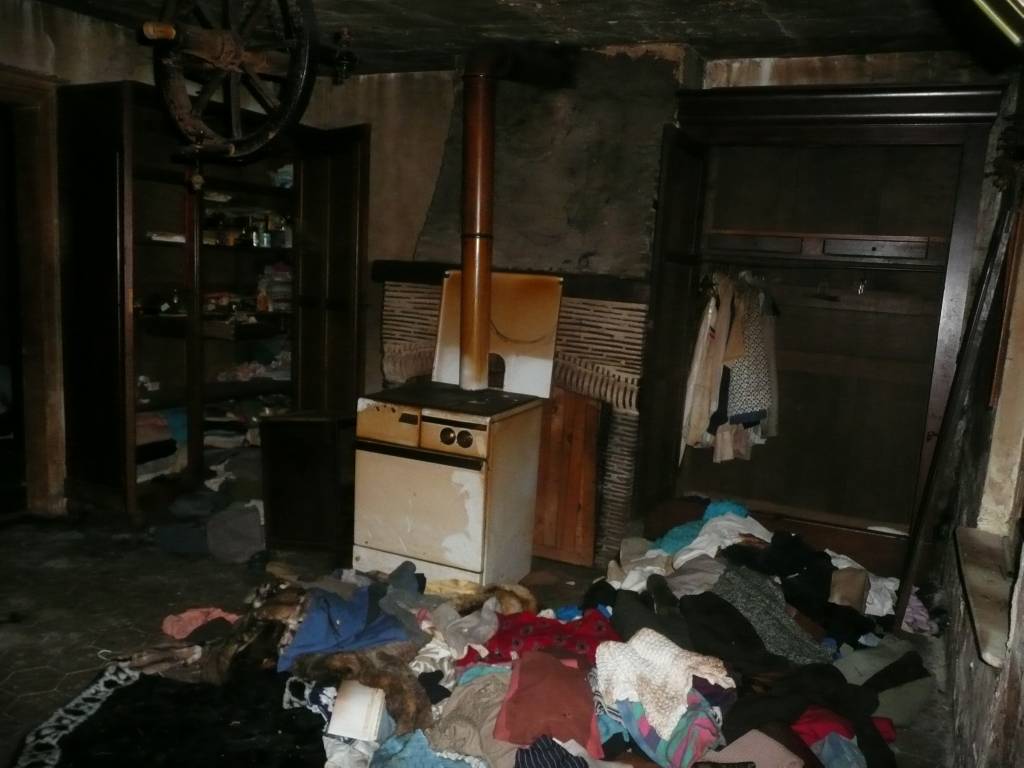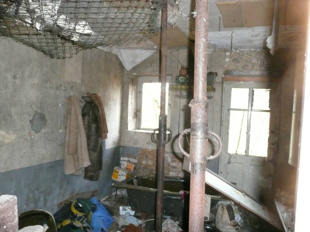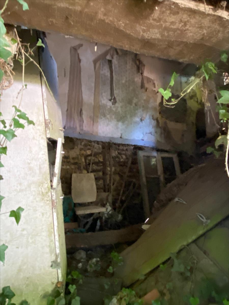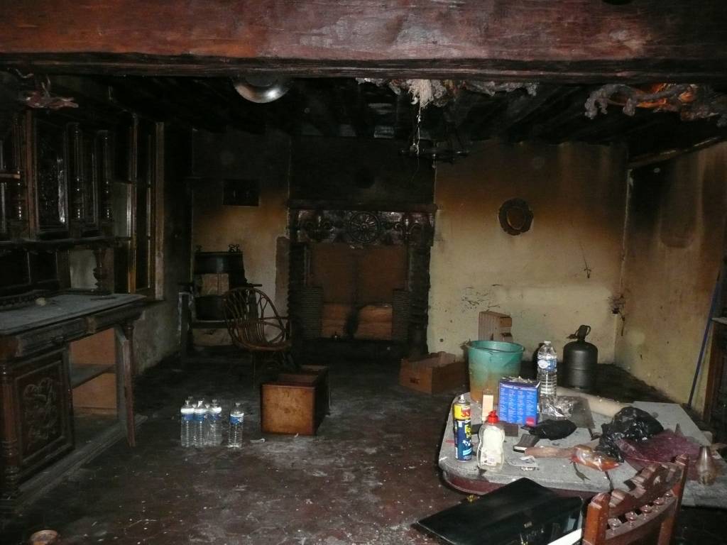 - séjour avec cheminée, cuisine avec cheminée, chambre, ancienne salle d'eau (le plafond est partiellement tombé)