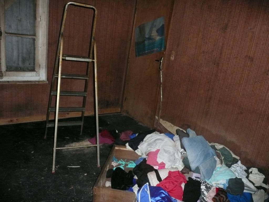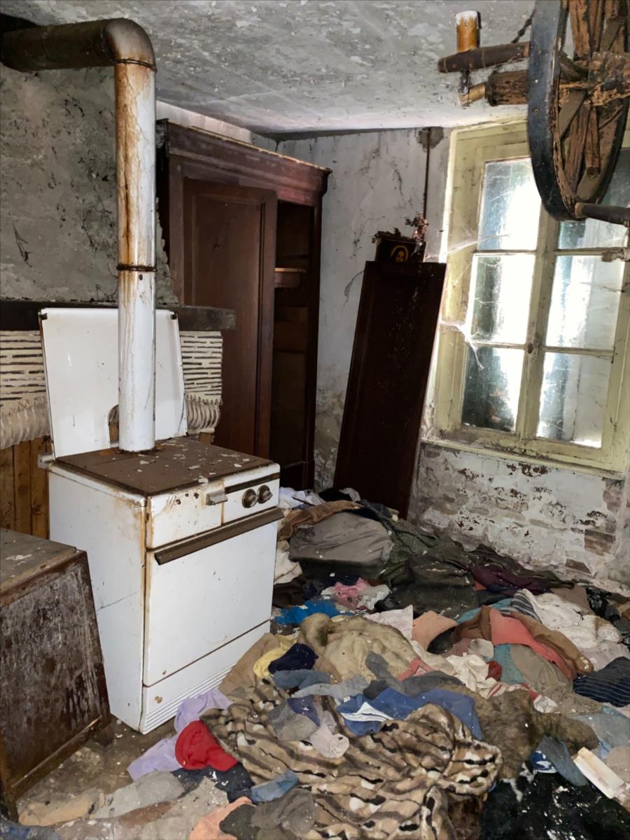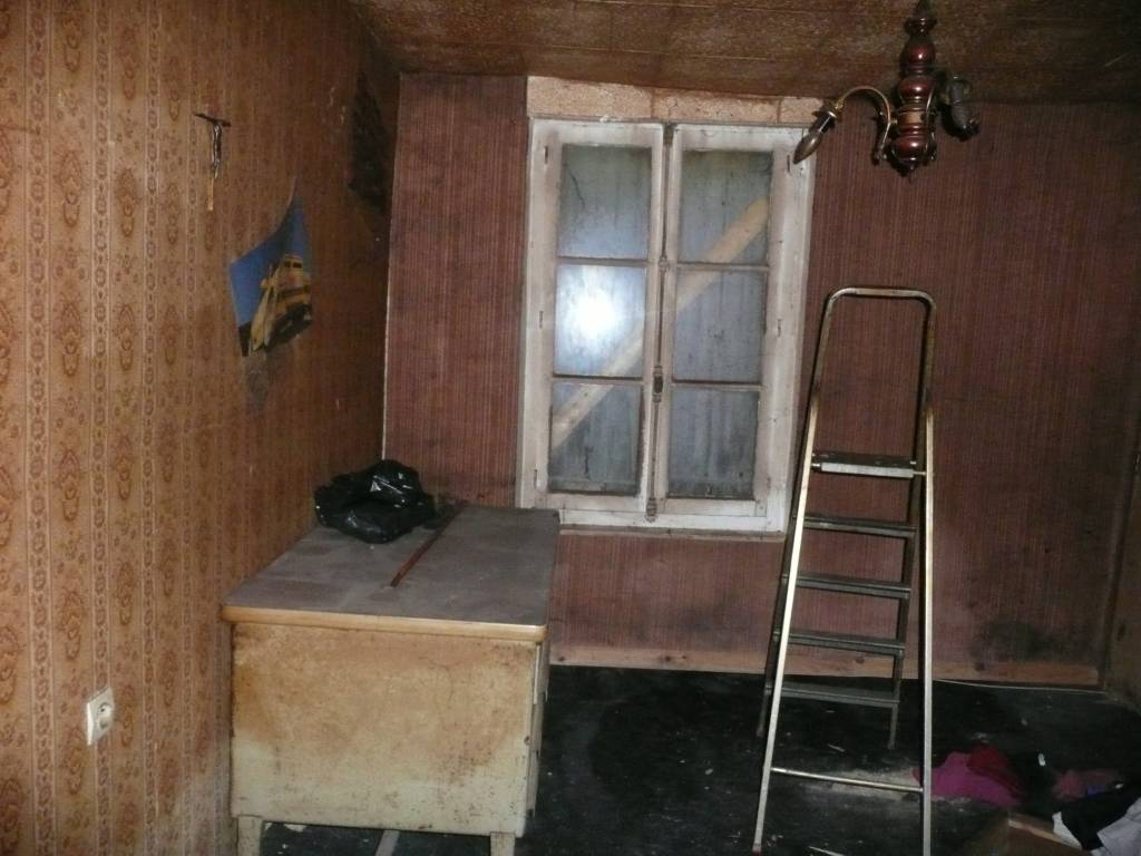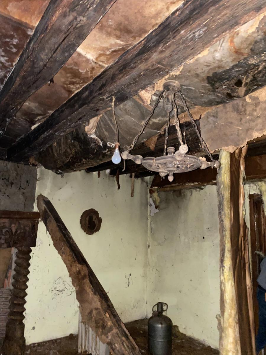 - séjour avec cheminée, cuisine avec cheminée, chambre, ancienne salle d'eau (le plafond est partiellement tombé)