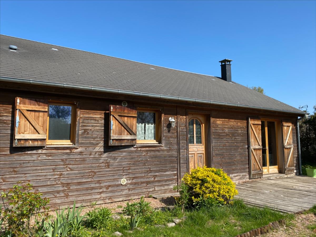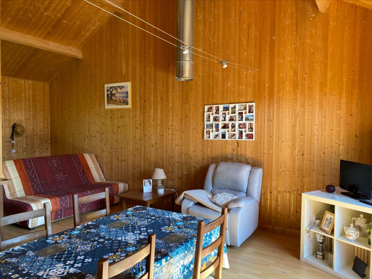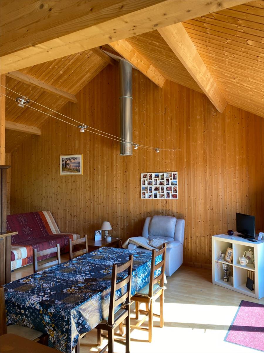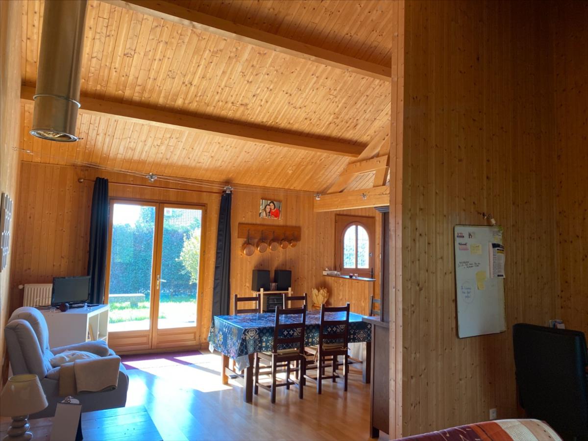 Chalet en bois construit en 2008 sur vide sanitaire, ossature en sapin, bardage en Douglas, couv. ardoises: