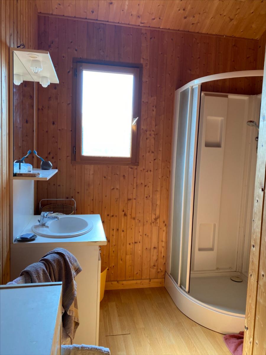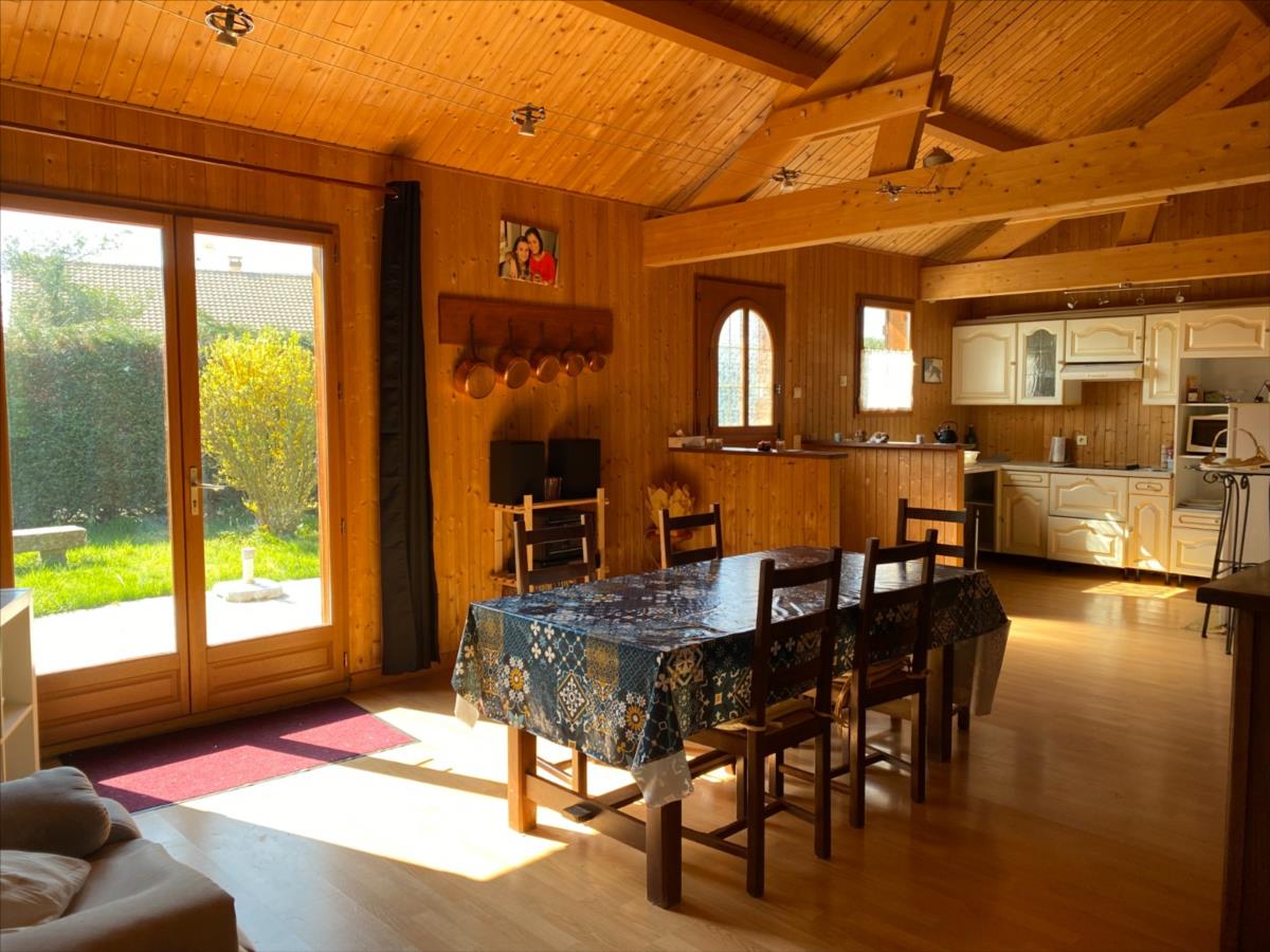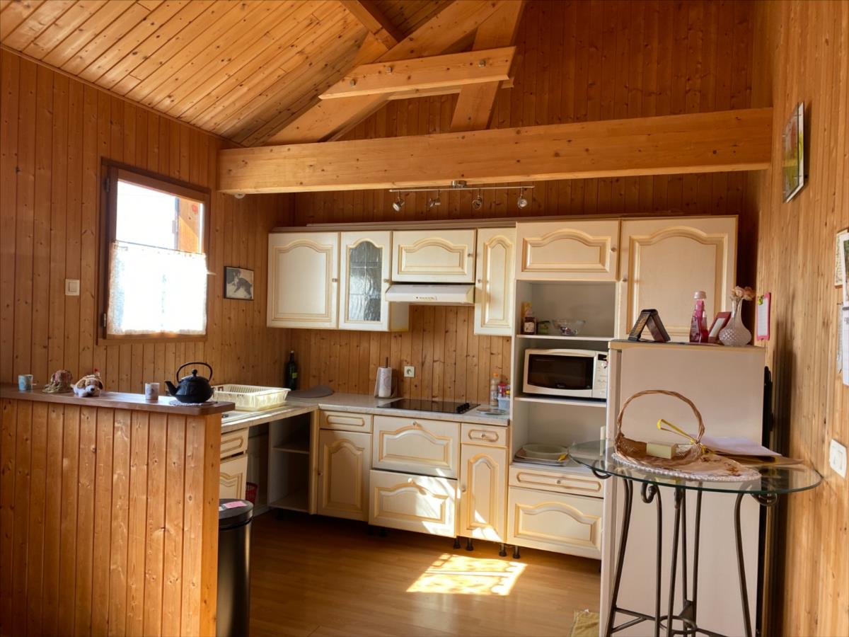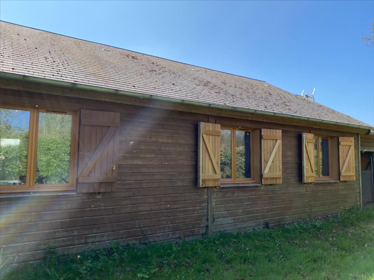 Chalet en bois construit en 2008 sur vide sanitaire, ossature en sapin, bardage en Douglas, couv. ardoises:
