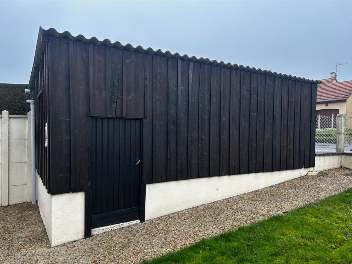 Garage en bois avec porte manuel pour accueillir une voiture.
