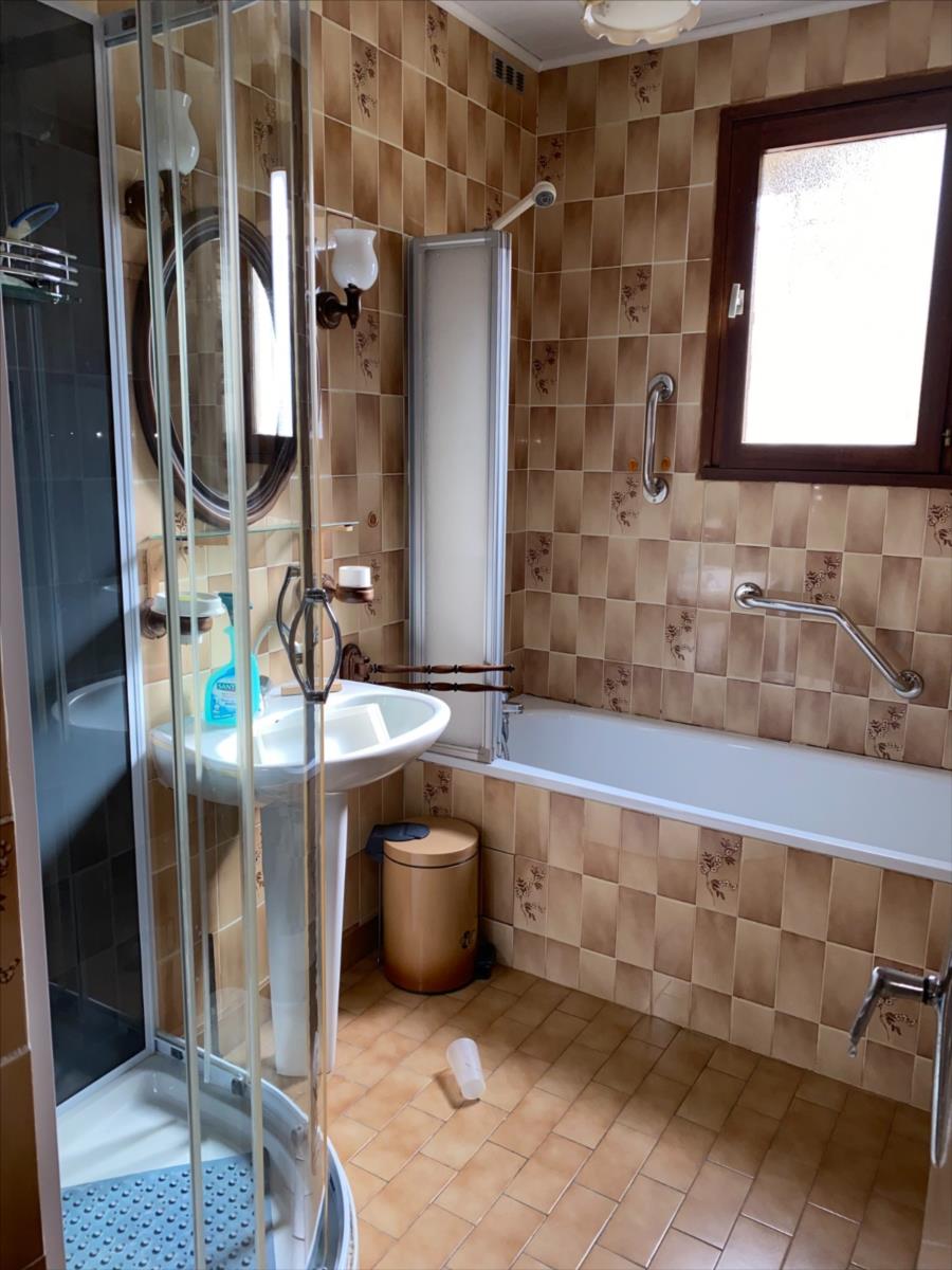 - au rez de jardin: véranda, cuisine aménagée et équipée (four, plaque et réfrigérateur) ouverte sur séjour-salon avec cheminée-insert, couloir, 3 chambres, salle de bain complète, wc.