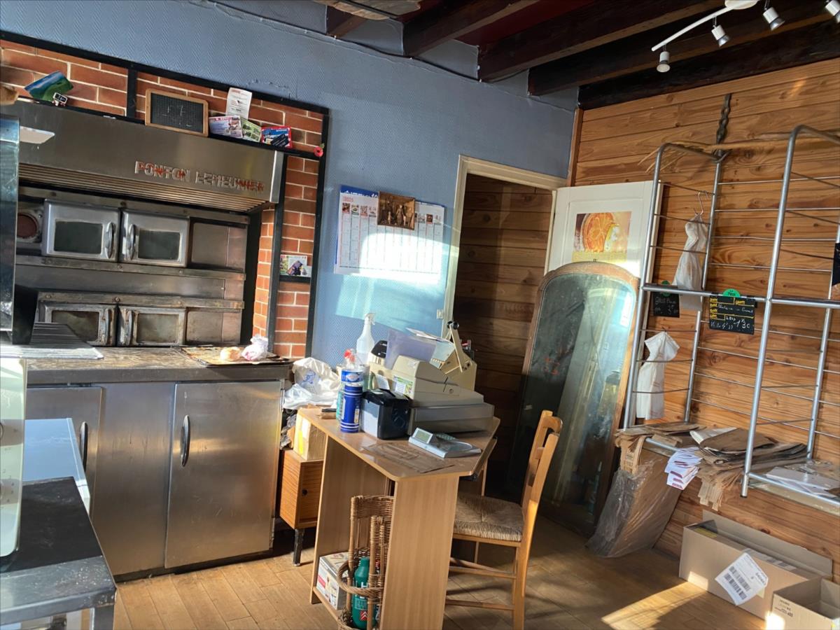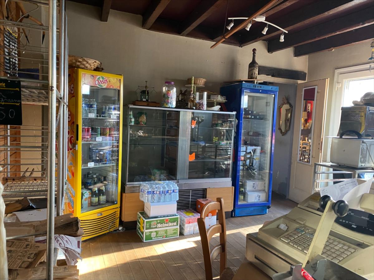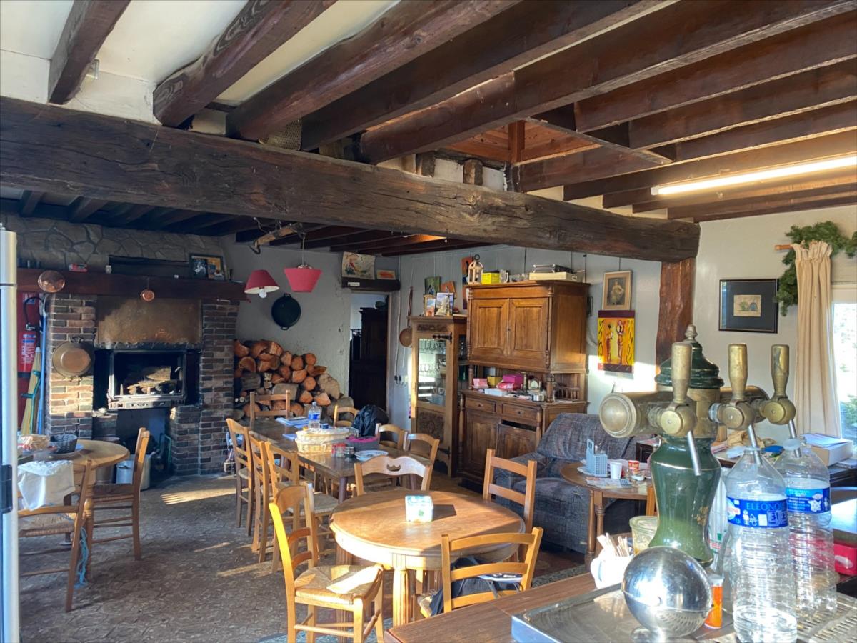 - une grande salle avec bar et cheminée, salle, cuisine, salle "plonge", salle de vente avec terminal de cuisson, réserve, wc avec lavabo.