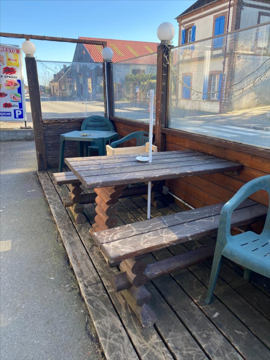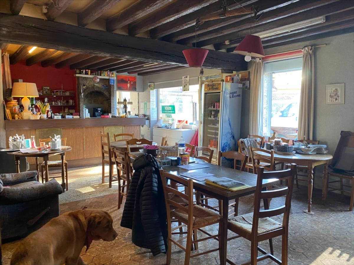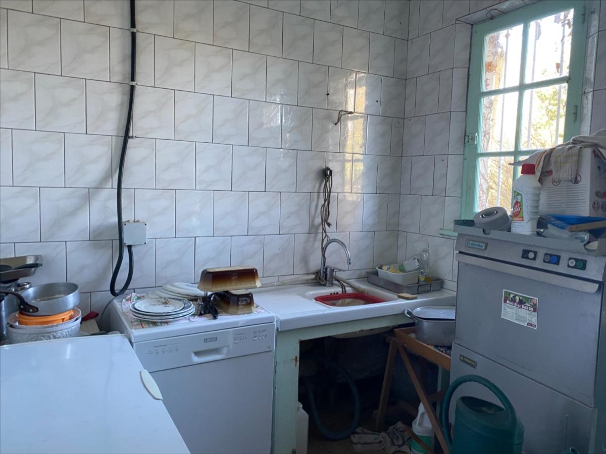 - une grande salle avec bar et cheminée, salle, cuisine, salle "plonge", salle de vente avec terminal de cuisson, réserve, wc avec lavabo.